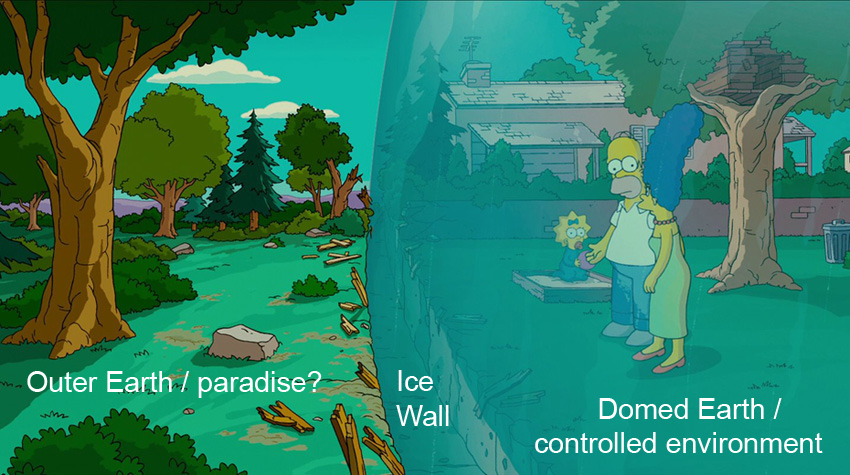 Listen to Hillary Clinton as she reveals in a veiled statement about the "glass ceiling" above us with 18 million cracks... https://www.youtube.com/watch?v=4gQ7zwnOptE. She and her party obviously know about their quarantine here on Earth and their willingness to get out of it. NASA appears to have learned the truth about our dome in the late 1950's when they sent rockets and cameras up into the atmosphere, but have decided to keep it a secret. One US encyclopedia even sizes our dome at various latitudes. See my article "rare and interesting pictures" in my conspiracy section, as well as the other articles in my flat earth section for more information. Even the Simpson's writers who are no doubt Freemasons know about the dome sporting about it in one of their episodes.