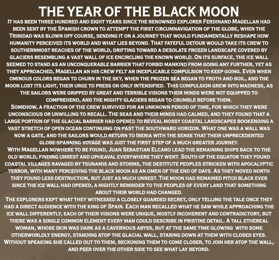ice wall and so they(Ferdinand and his crew) did so via the Sentinel's Gate. The Black Moon phenomena lasted 60 years bringing fear and awe to the world
