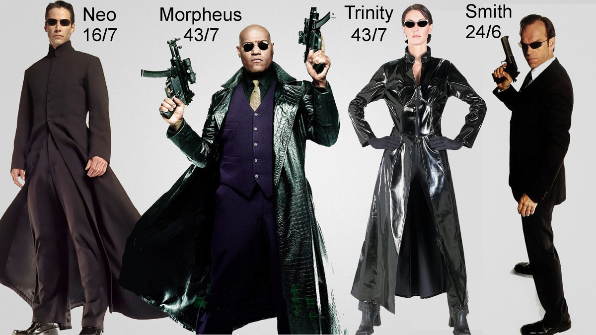 Agent Smith who is a villain rather than a superhero is a 6. I included him to show that he is one level lower in power or potential than a 7. |