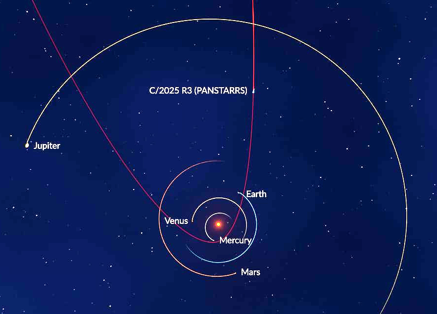 Pan-STARRS or C/2025 R3 also known as the Dawn comet was discovered in September of 2025 by the Pan-STARRS observatory in Maui Hawaii. It has an orbit of some 170,000 years with a highly eliptical orbit. The average AU is 3100 and ithe incination is 124.73 degrees. It stays in tropical Taurus for most of its orbit except when near perihelion or closest approach to the Sun which occurs on April 19th 2026. ![]() Most of us have Pan-STARRS C/2025 R3 in early to mid tropical Taurus (1900-2020). Below is an ephemeris or tables showing comet comet Pan-Starrs' position through the tropical zodiac from 1600 AD to 2500 AD.